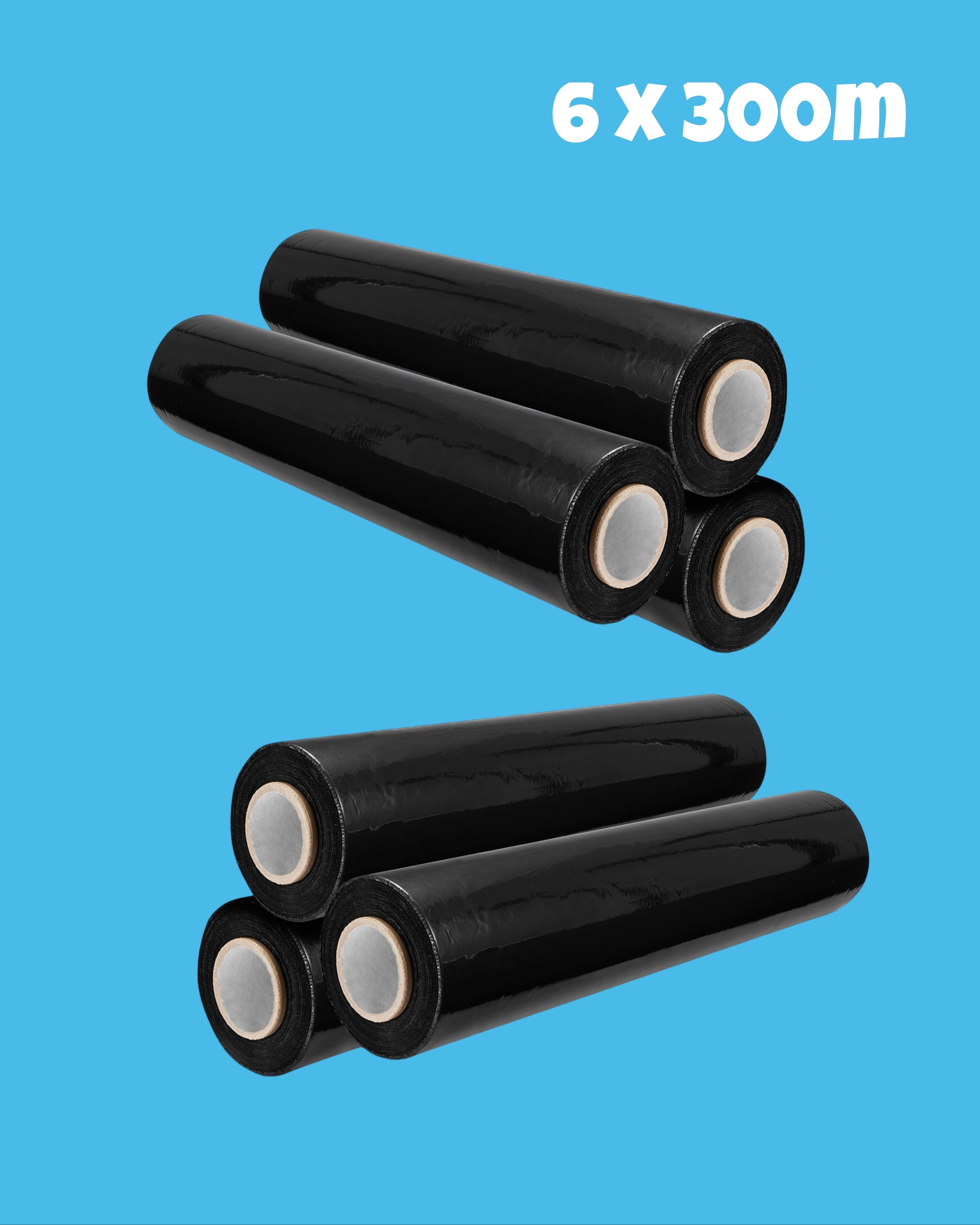 6 x Rollen Handstretchfolie 500mm x 300m x 23my schwarz